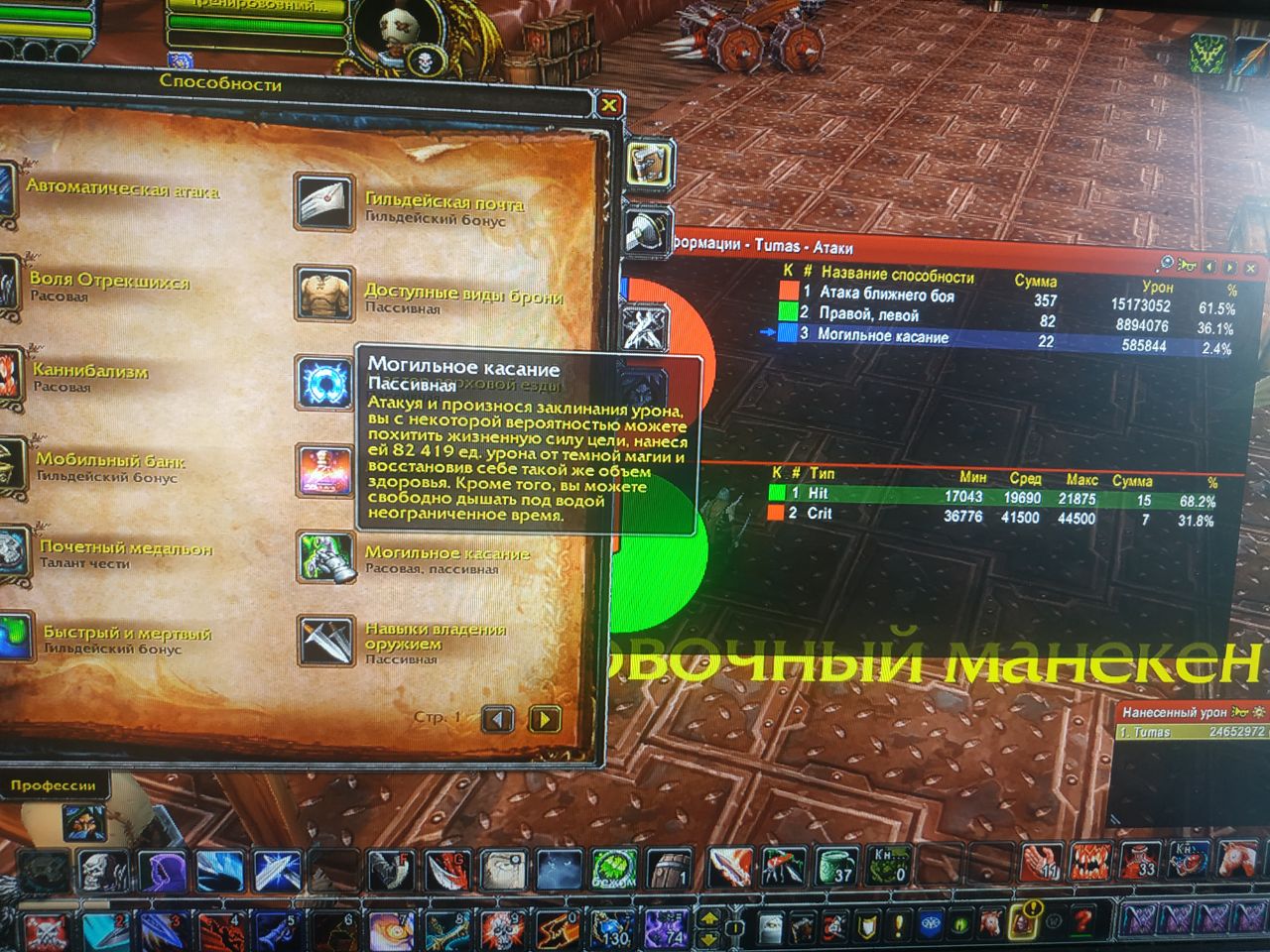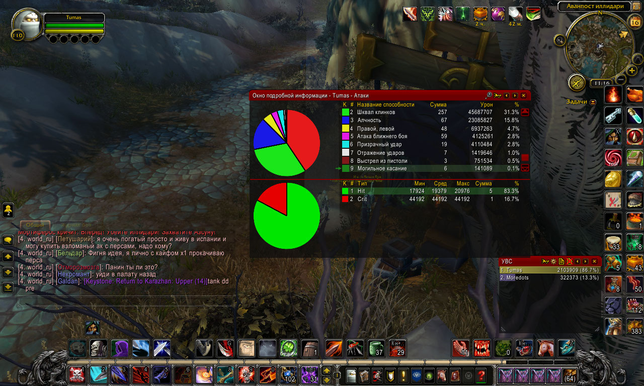 Попробуйте исправить персонажа в личном кабинете (https://cp.uwow.biz/character/correct) или другой аддон, например Details (https://www.curseforge.com/wow/addons/details/files/2556021) Проверили ещё раз и с уроном всё нормально: https://egammi.net/image/q6uI |
