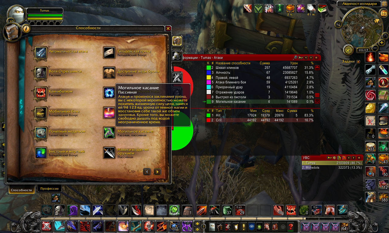 | Description | Урона у меня на способности показывает 94т за раз, а рекаунт показывает что даже крит этой способности не выше 44т. Заниженный урон и очень редкое срабатывание. А еще общий показатель показывает что за 6 раз срабатывания было исцелено на 134т. Хотя за 1 раз должно исцелять на 94т согласно описанию способности.+ универсальность должна влиять на этот показатель, как и на все остальные хилки. Почините) | ||||
