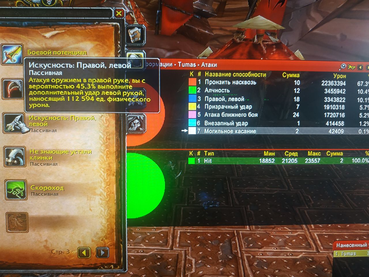 А вот показатель прока 20 процентов. Должен быть. Для сравнения пассивка Правой-левой 45% прокнула за короткий бой 18 раз, режем на пополам и получаем примерное 9, но не 2. Знаю, вероятность не так работает. Но все же. Лучше проверить. Процент прока. А на счет урона я вам показываю. |