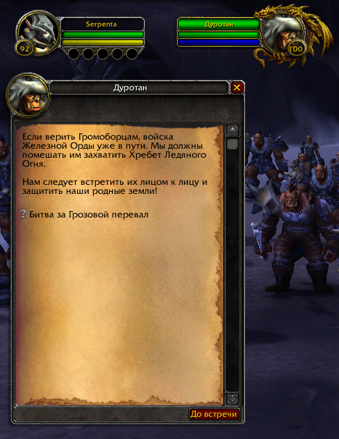 | Description | https://www.wowhead.com/ru/quest=34124 Нет возможности заставить Дуротана стартовать сценарий. | ||||