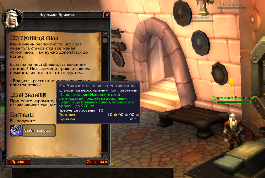 | Description | Стабилизированная эссенция титана по красоте, мощный предмет ничё не скажешь, вендор сказал спасибо https://www.wowhead.com/ru/item=151423 | ||||