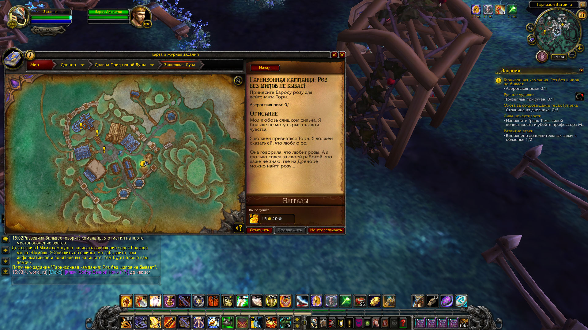 | Description | Гарнизонная компания: роз без шипов не бывает Номер квеста 36160 https://www.wowhead.com/ru/quest=36160/гарнизонная-кампания-роз-без-шипов-не-бывает#comments Неактивен розовый куст в саду. Сад 3 лвл | ||||