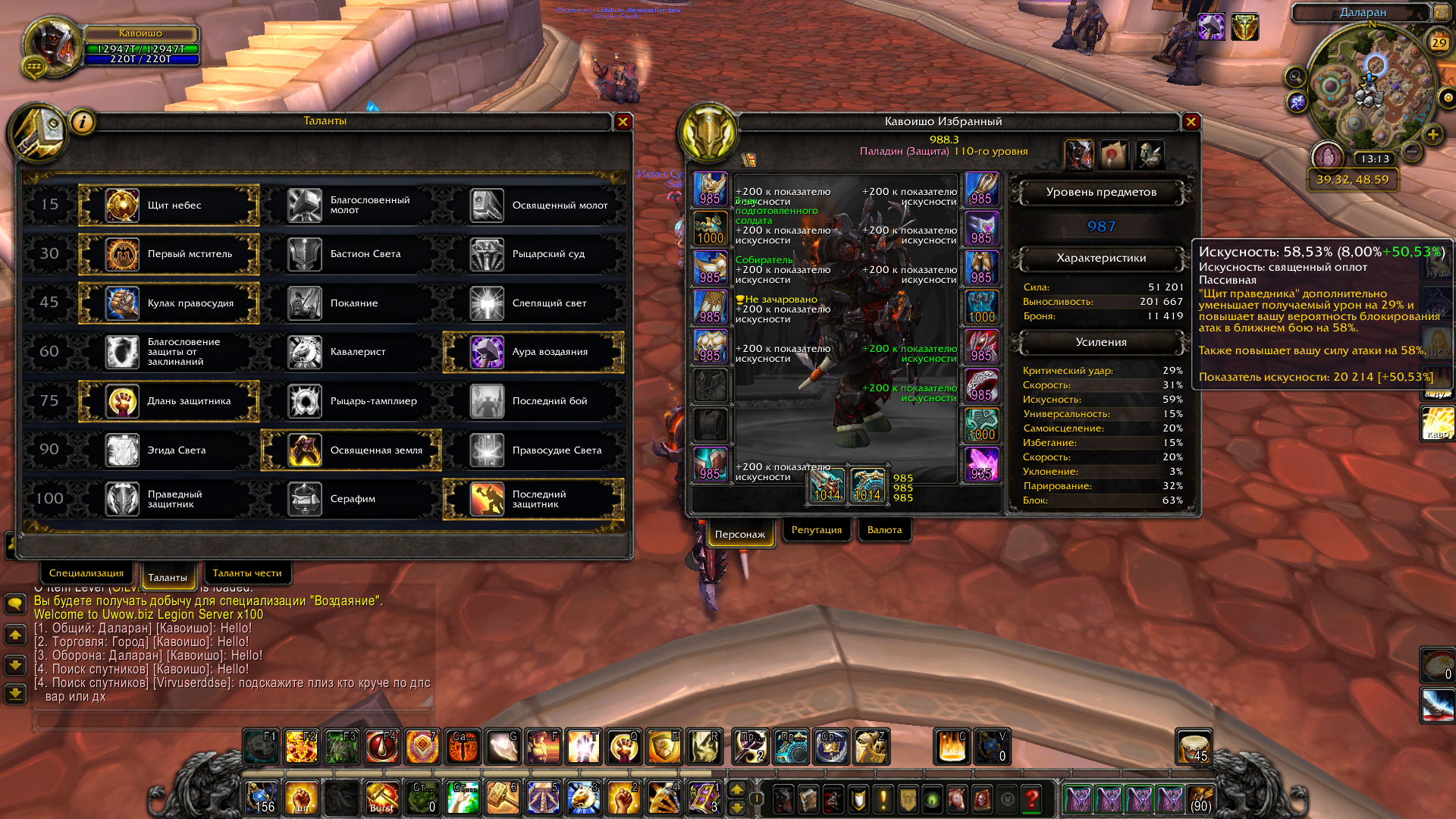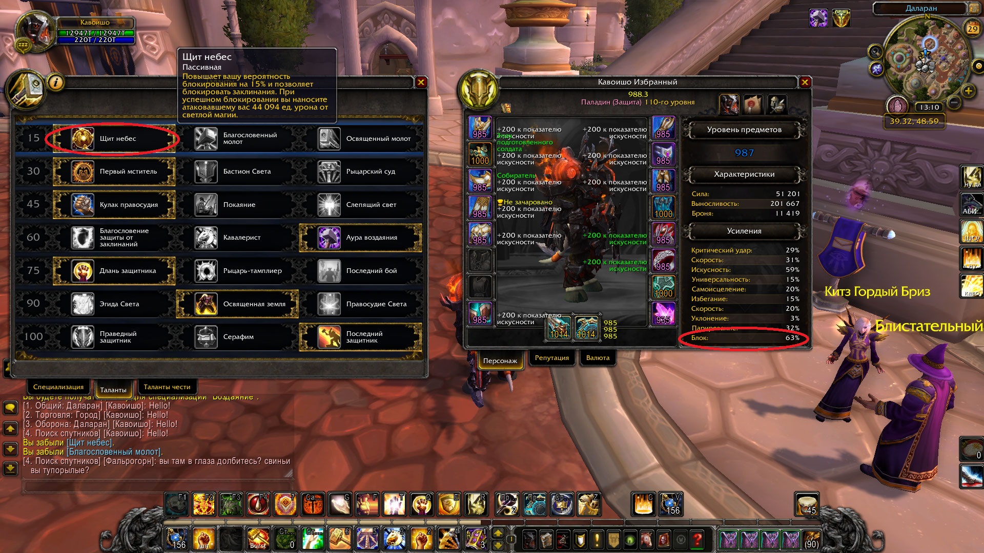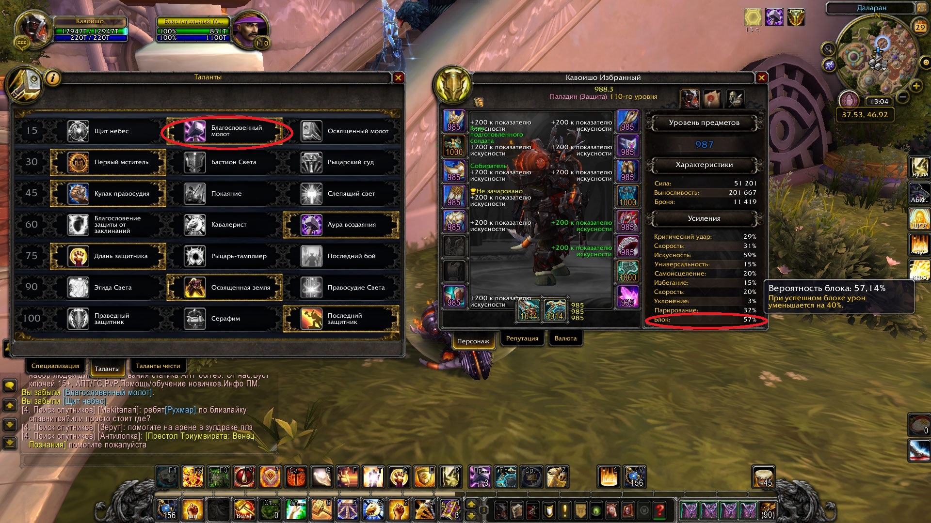 | Description | До ваших проф. работ 2 дня назад блок был 94%, сейчас 57%. Искусность 20214, не изменялась. При этом взяв первый талант щит небес, характеристика блок становится 66%. Должно быть 57+15=72. Играть в танкоспеке стало невозможно. Вообщем верните мои 94% блока в протопаладине. | ||||