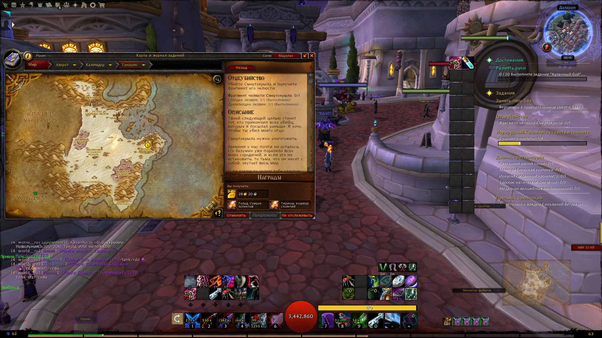 | Additional Information | В конце боя, когда челюсть убита и Смертокрыл плюётся огнём игра крашнулась. После оперативного перезахода в 10 об увидел лут с босса. Зайдя в лут квестового предмета не обнаружил. После прохода в 25 гер игра также крашнулась. После релога лута не было вообще. Локация была пустая. Ни мобов, ни лута. Сам квест: https://www.wowhead.com/ru/quest=30118/отцеубийство Квестовый предмет: https://www.wowhead.com/ru/item=78352/фрагмент-челюсти-смертокрыла | ||||