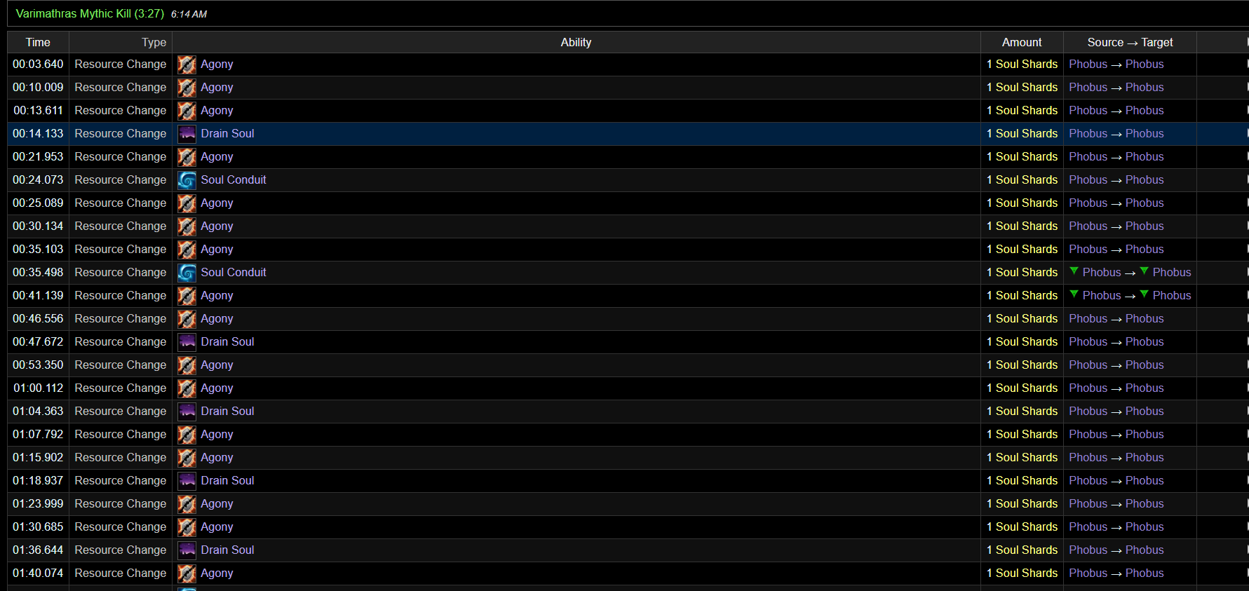 | Description | заклинание чернокнижника специализации Колдовство https://www.wowhead.com/ru/spell=980/%D0%B0%D0%B3%D0%BE%D0%BD%D0%B8%D1%8F в комментариях описание мне не совсем понятно, но не в этом суть поиграв на сервере я заметил очень неприятную особенность, а именно дико низкий интервал прока осколка, порой по 12-14 секунд найдя человека попросил дать лог боя рандомного 975-80 лока с обычными статами (30 30 120) и вот что в этом логе видно что - осколков больше на 10-8 попросив людей мне сделали ва которая линкует в чат интервал прока осколка от агонии, и он виден на скрине пожже возможно еще раздобуду скринов с логов | ||||