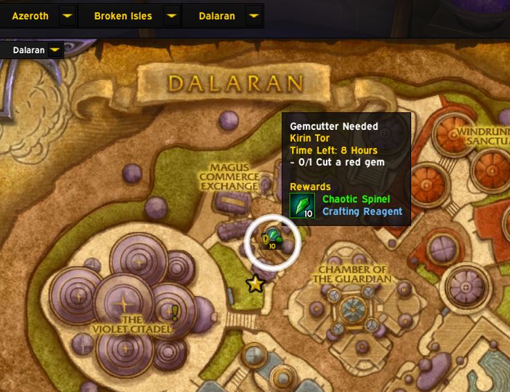 | Description | On map overlay I'm seeing a World Quest for my profession Jewelcrafting in Dalaran but it doesn't work | ||||