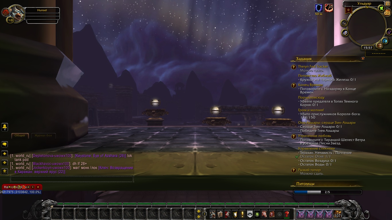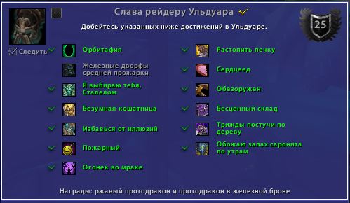 А если сложность подёргать? Такое зависание обычно от забаганной сложности. Ульда в легионе существует в двух сложностях, обычка и таймволк. Можно попробовать ставить 25об. В любом случае, у меня не воспроизводится. По поводу ачивок, то 2/3 и не должны работать, которые с 10 и 25 отключены и заменены ачивками без сложности. Баг как раз в том, что эти самые ачивки дают) |
