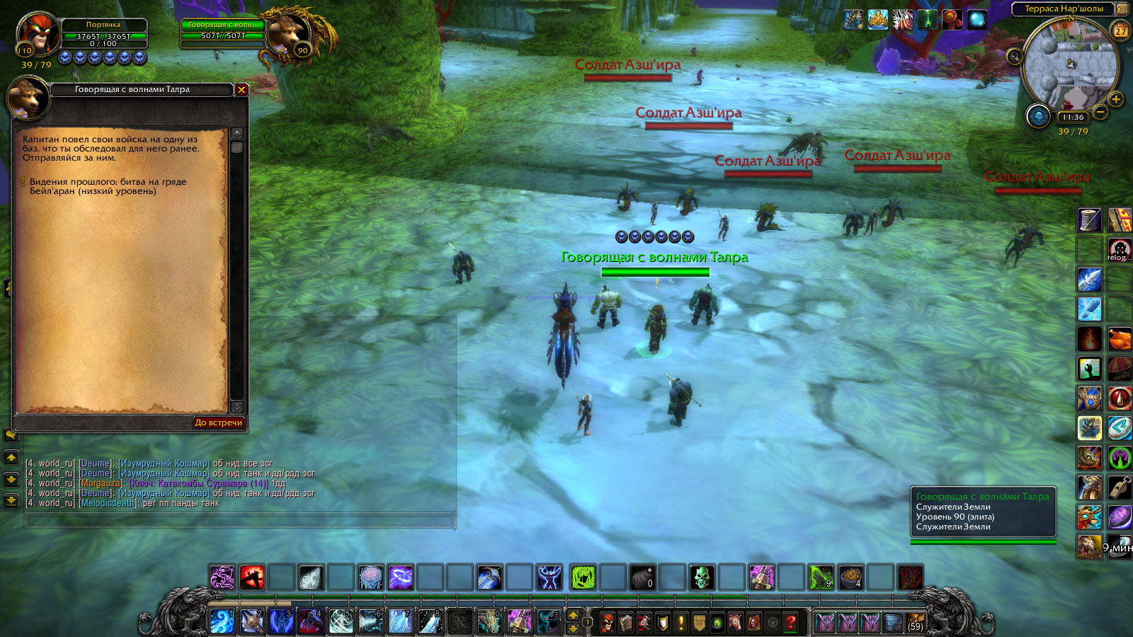 Ничего нового не посоветовали - Я и папку КЕШ чистил и персонажа ремонтировал в ЛК и квест отменял и брал заново ((единственное чего не смог отобрать у шамана БУБЕН чтоб НПС прилетело туда.Как описывал-так и не реагирует НПСи начать с ней ДИАЛОГ неполучаеться. |