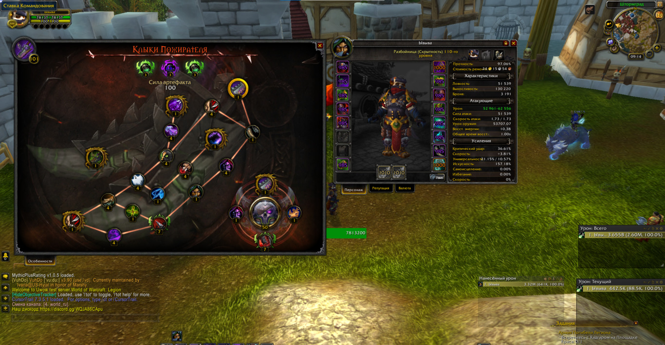 | Description | способность разбойника специализации скрытность https://www.wowhead.com/ru/spell=185438/%D1%83%D0%B4%D0%B0%D1%80-%D1%82%D1%8C%D0%BC%D1%8B наносит меньше урона, чем по идее должно быть, так как - модификаторов на данный спел много - 2 трейта, 3 таланта, танец,найтблейд, символы что-то из них затерялось, так как - урона наносится почти на миллион меньше, лог боя ювова https://www.warcraftlogs.com/reports/HvfY82qZbxgpW9B1#fight=51&type=damage-done&source=181&ability=185438&view=events персонаж в абсолютном фулл гире - и для максимального результата с 7 реликами на урон Ут, и 7 на Крит урон Ут не знаю, подойдет ли вам для примера симкрафт инфа, но я покажу для большей наглядности - пример игрока офф сервера - https://www.youtube.com/watch?v=uxWbJ1L0QHY&t=1491s 970илвл урон Ут 4.5 + - с разбросом, так же скрин статов игрока с видео предоставлю позже будет возможность дать логи высокого гира шд, пока подписка не появится у посредника | ||||