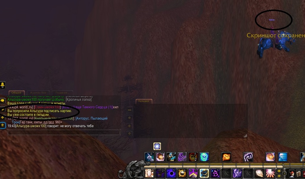 | Description | Не могу создать свою гильдию. Беру хартию, прошу персонажа подписать. Мне пишут что я уже состою в гильдии. Персонаж после этого (кого просили подписать) больше не может общаться со мной через шепот, только после перезагрузки. Это происходит на нескольких персонажах. | ||||