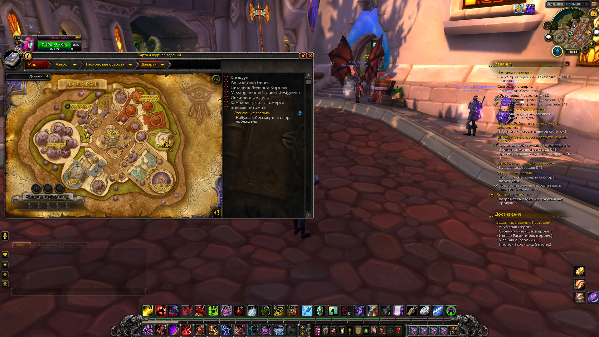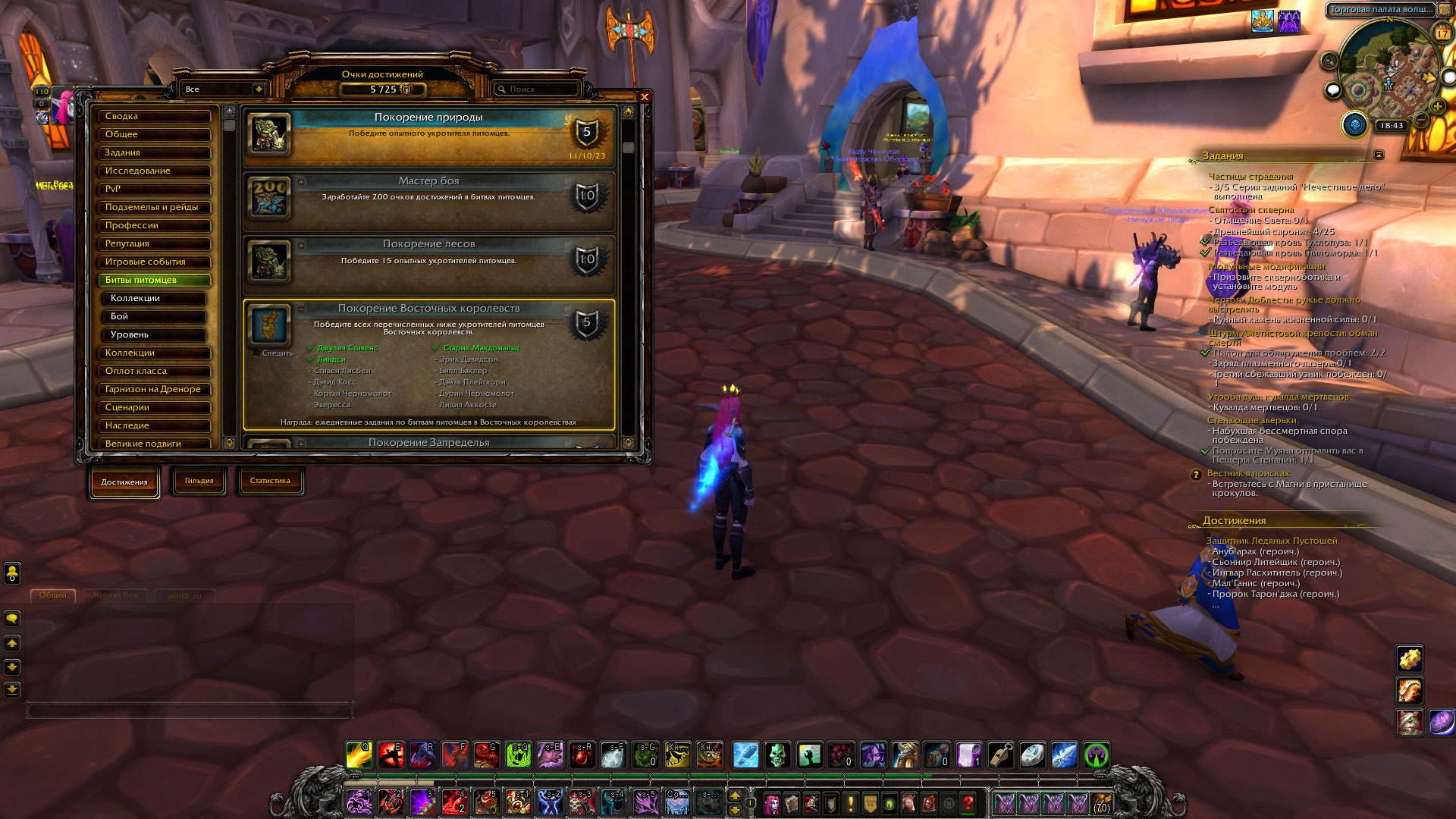 | Description | В ходе выполнения цепочки квестов боевых питомцев доходишь до заданий победить укротителей восточных королевств (отчивка "Покорение восточных королевств")(https://www.wowhead.com/ru/achievement=6603/%D0%BF%D0%BE%D0%BA%D0%BE%D1%80%D0%B5%D0%BD%D0%B8%D0%B5-%D0%B2%D0%BE%D1%81%D1%82%D0%BE%D1%87%D0%BD%D1%8B%D1%85-%D0%BA%D0%BE%D1%80%D0%BE%D0%BB%D0%B5%D0%B2%D1%81%D1%82%D0%B2). Делаешь пару квестов на победу укротителей, и после нескольких релогов (1-5), полностью сбрасывается прогресс цепочки заданий и все необходимо начинать с самого начала, с первого квеста, и так по кругу (4 раза уже делал цепочку, эффект один и тот же) |