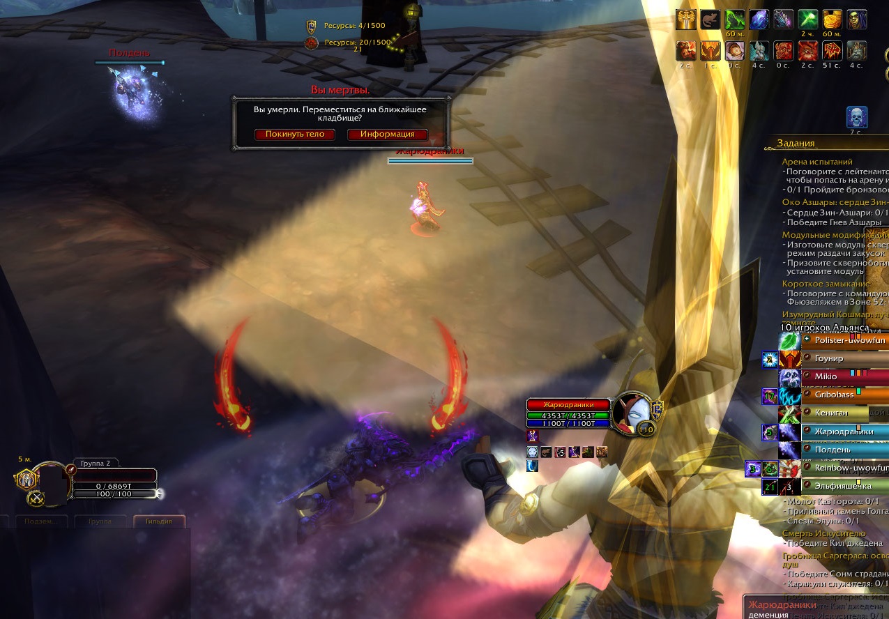 | Description | Испытание битвой Радиус действия: 100 м Мгновенное действие Требуется: Воин Один дал вам второй шанс победить противника, одолевшего вас в бою. Если вы сумеете сделать это в течение 8 sec., Один вернет вас к жизни и восстановит вам 50% от вашего максимального запаса здоровья. https://www.wowhead.com/ru/spell=218826/ в 70% работает неадекватно на бг. Персонаж умирает под валькирией. ничего использовать нельзя. Потом воскрешается и через секунду опять умирает, либо не воскрешается. По сути сколько дамага в вара не вливай умирать не должен под валькирией. | ||||