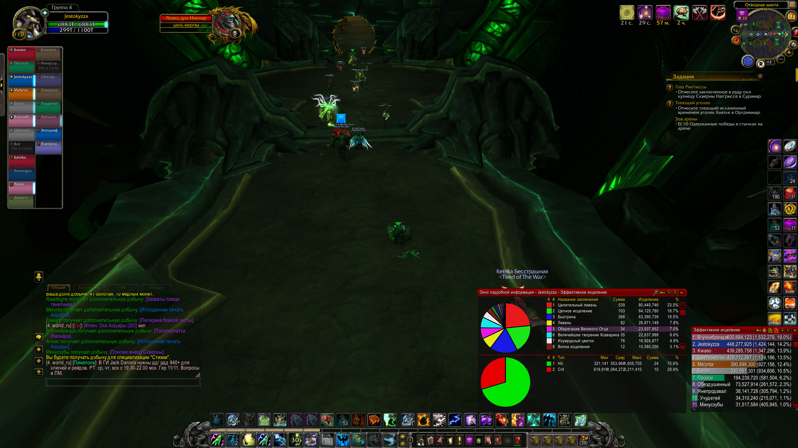 Если цепухой хилю (она в рекаунте на 1 месте, в т.ч на скрине с Аргуса), то чаще через себя юзаю. На Аграммаре мифик через себя в 80% случаев юзаю. Специально пытаюсь заранее цепным исцелением накинуть стаков перед перефазой. Но там ситуация +- та же. Что я, что другие хилы в рейде больше 1-2 моих стаков на союзниках не видят, и то, не на всех союзниках он вешается. Хилю Целительным ливнем, по кд, цепным исцелением + быстриной. |