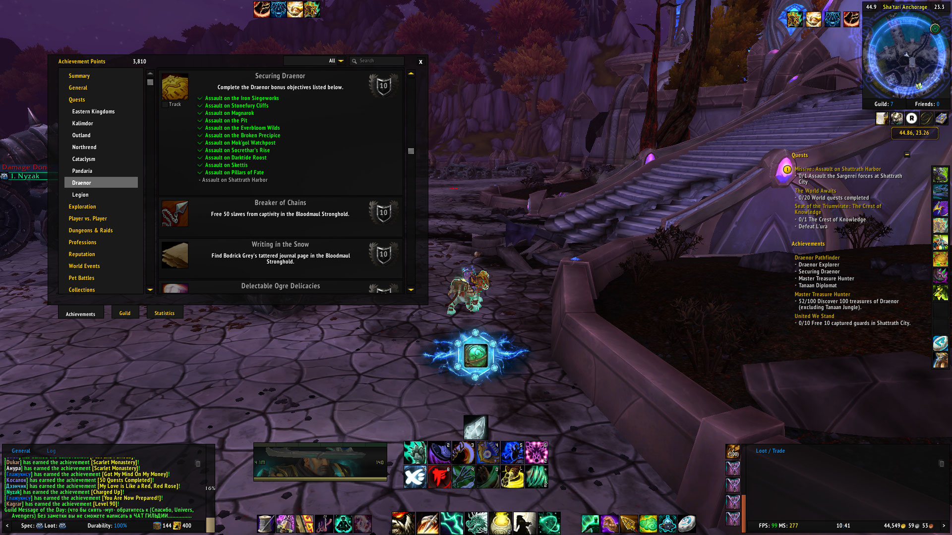 | Description | hello I'm currently doing Draenor Pathfinder achievement and I'm stuck in "securing Draenor" achievement The last missive which is "Assault on Shattrath Harbor" doesn't start and there is no progress at all eventhough you kill mobs can you please fix it? Character name: Nyzak Zone: Shattrath Talador in Draenor achievement: Securing Draenor (Draenor Pathfinder) Server: Legion x5 Thank you!! | ||||