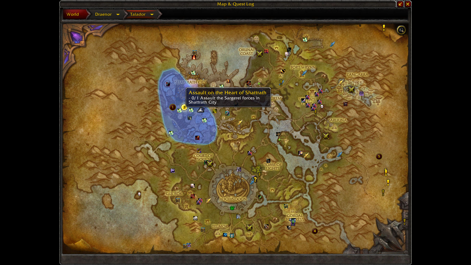 | Description | WOD Pathfinder achievement "Securing Draenor" needs 12 area quests completed. "Assault on Shattrath Harbor" doesn't progress at all no matter what kills are made or objects interacted with. | ||||