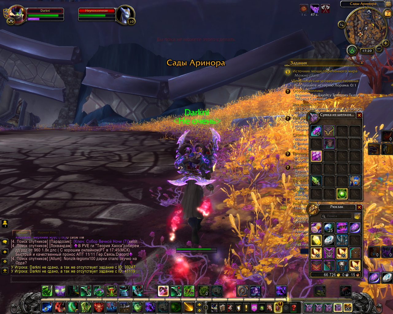 Удачного похождения вам на Аргусе, но придется перебрать все квесты, чтобы найти, какой квест у вас есть |