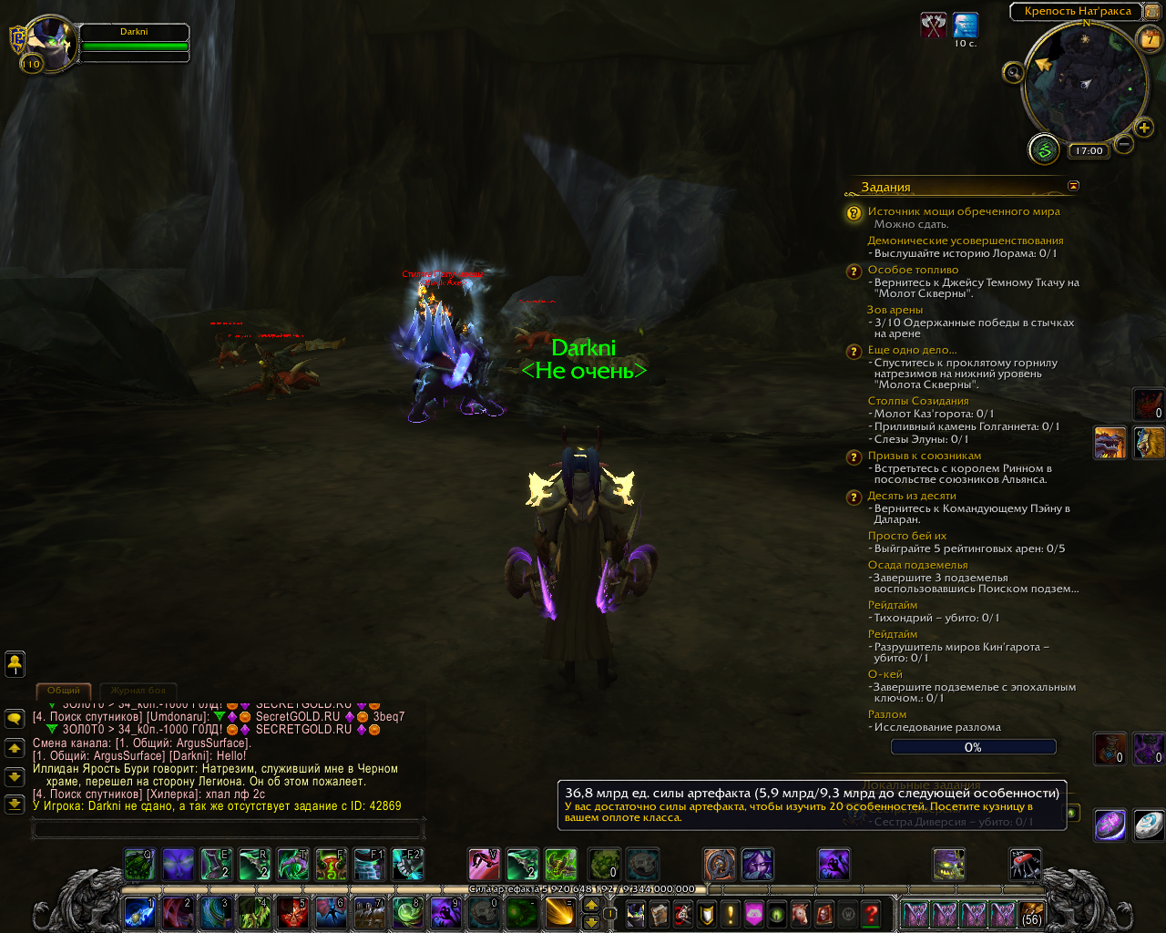 Удачного похождения вам на Аргусе, но придется перебрать все квесты, чтобы найти, какой квест у вас есть |