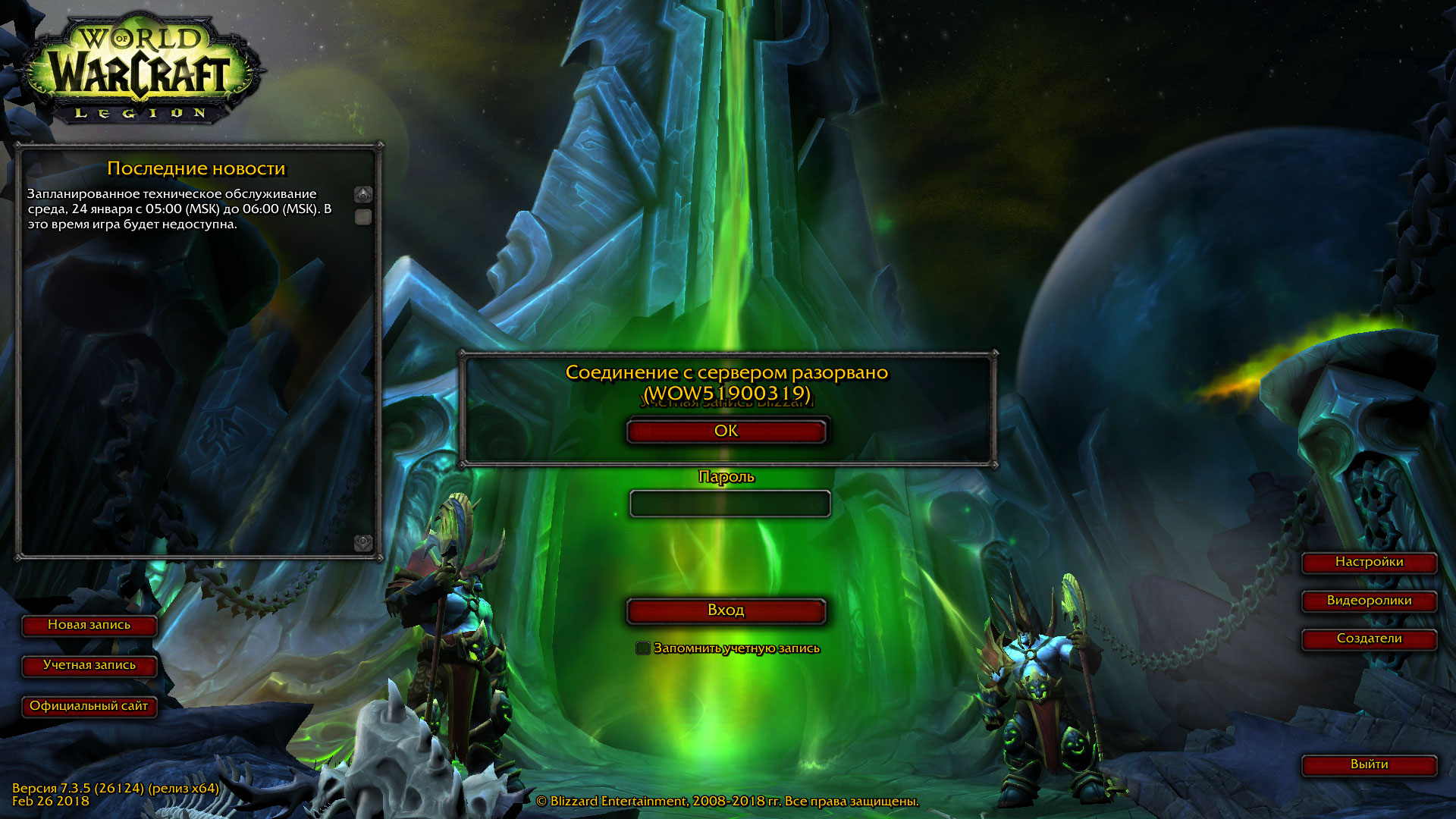 | Description | В меню выбора персонажа всё отлично. Заходишь в игровой мир и сразу выбрасывает | ||||