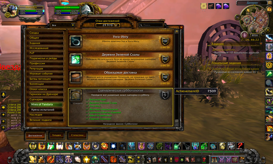 | Description | Не дало ачив https://www.wowhead.com/ru/achievement=7509 хотя все критерии выполнены. Манипуляции с О'ши так же не помогли. | ||||