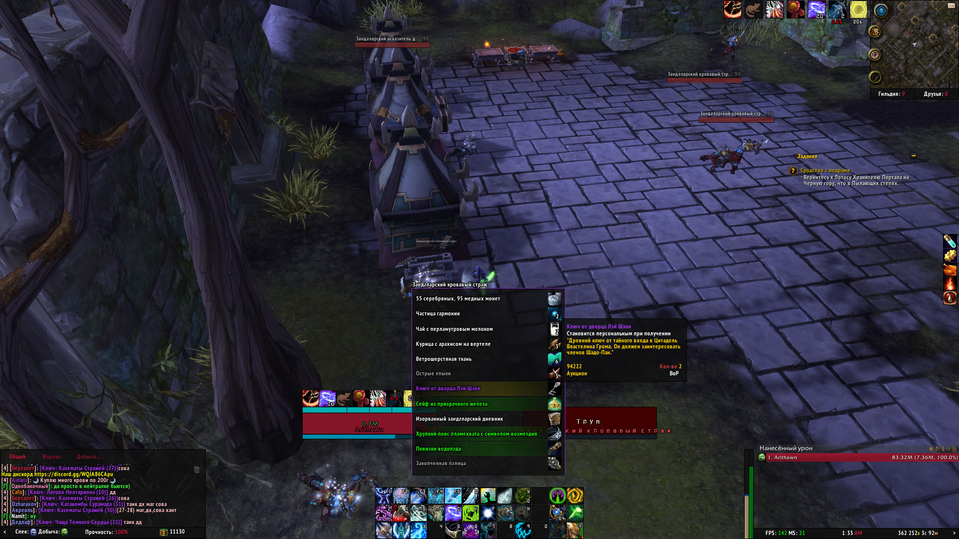 | Description | Исходя из wowhead https://www.wowhead.com/ru/item=94222/%D0%BA%D0%BB%D1%8E%D1%87-%D0%BE%D1%82-%D0%B4%D0%B2%D0%BE%D1%80%D1%86%D0%B0-%D0%BB%D1%8D%D0%B9-%D1%88%D1%8D%D0%BD%D1%8F#contained-in-item данный ключ можна найти в сундуках и связке ключей в оплоте рог, но также он дропается с треша возле Престола Гроз, а именно https://www.wowhead.com/ru/npc=69294/%D0%B7%D0%B0%D0%BD%D0%B4%D0%B0%D0%BB%D0%B0%D1%80%D1%81%D0%BA%D0%B8%D0%B9-%D0%BA%D1%80%D0%BE%D0%B2%D0%B0%D0%B2%D1%8B%D0%B9-%D1%81%D1%82%D1%80%D0%B0%D0%B6#drops;150 подозреваю, что из остального треша тоже дропается |