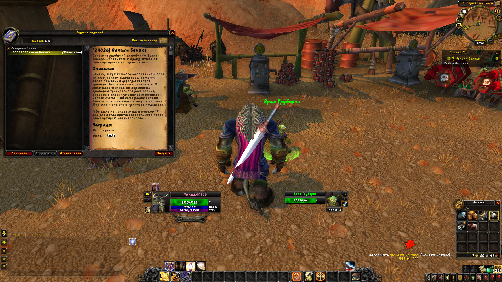 | Additional Information | В самом задании сказано "Отнесите разбитый самофланж Венаки Бенике. Обратитесь к Браку, чтобы он телепортировал вас прямо к ней." | ||||