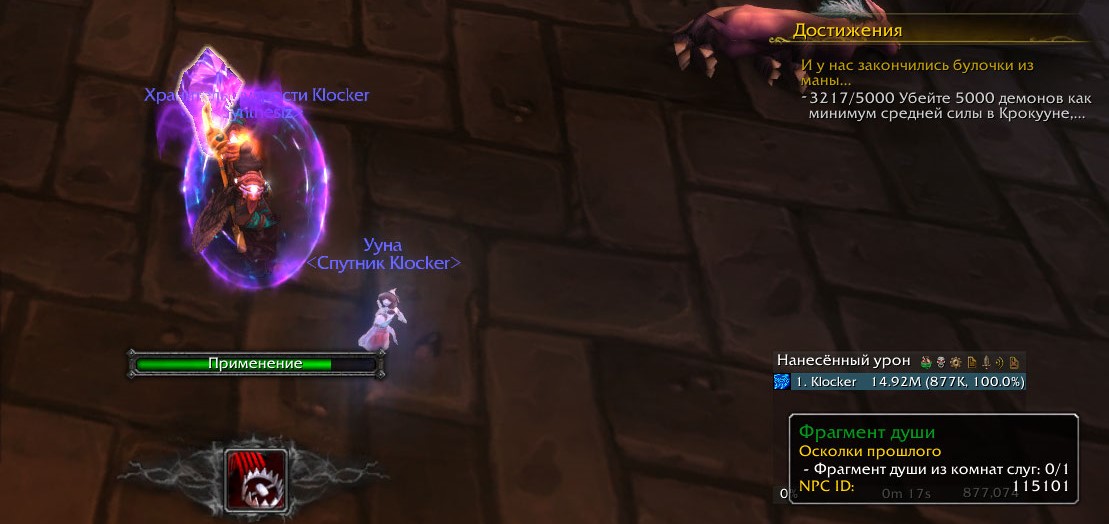 | Description | Получается собрать все необходимые фрагменты кроме одного - Фрагмент души из комнат слуг. Каст происходит - заканчивается - кристалл становится не юзабельным - в квест не засчитывается. Юзал один. Ещё раньше пробовал будучи в группе - не срабатывает. | ||||