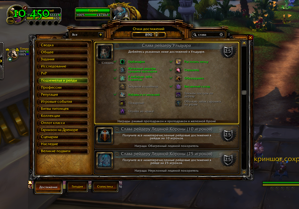 | Description | у меня забагалось и не далось достижение https://www.wowhead.com/ru/achievement=12341 , проходили с другом вдвоем, он получил а я нет, все условия получения были выполнены | ||||