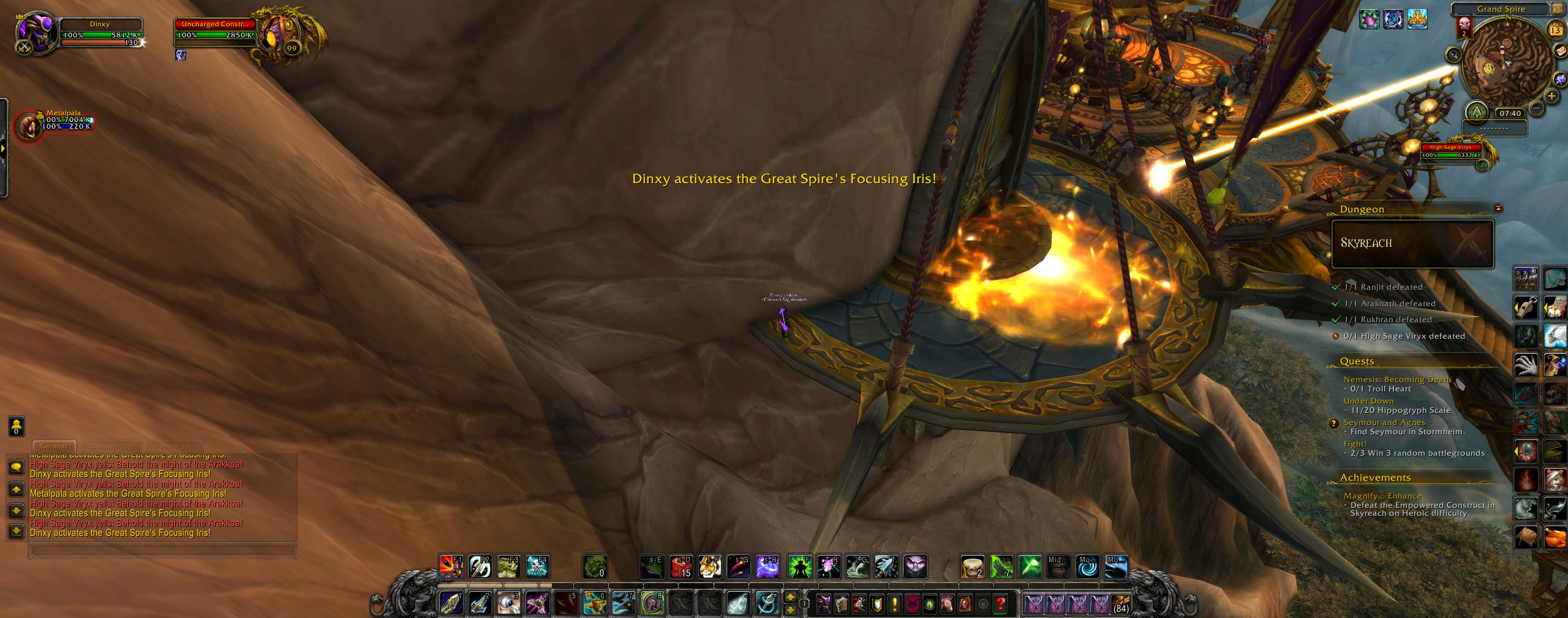 | Description | This achievement can't be completed. To complete this, you must make follow these steps: 1. Before engaging High Sage Viryx, go to the right of his platform and look down. You'll see a very tiny Uncharged Construct on a small platform. Can't solo, must have two players, one to tank the boss, and other to jump down. 2. One player must jump down to the platform. 3. Have the other member of the group engage https://www.wowhead.com/npc=76266/high-sage-viryx and wait until his https://www.wowhead.com/spell=154043/lens-flare targets the party member standing on top of the https://www.wowhead.com/npc=86918/uncharged-construct . 4. The https://www.wowhead.com/npc=86918/uncharged-construct will become an https://www.wowhead.com/npc=86919/empowered-construct, making it active. The party member can now kill it. 5. Let the rest of the group finish off https://www.wowhead.com/npc=76266/high-sage-viryx , and have them jump down to where https://www.wowhead.com/npc=86919/empowered-construct is and kill it. Here's an youtube video explaining it: https://youtu.be/EqhsDXjIMCI | ||||