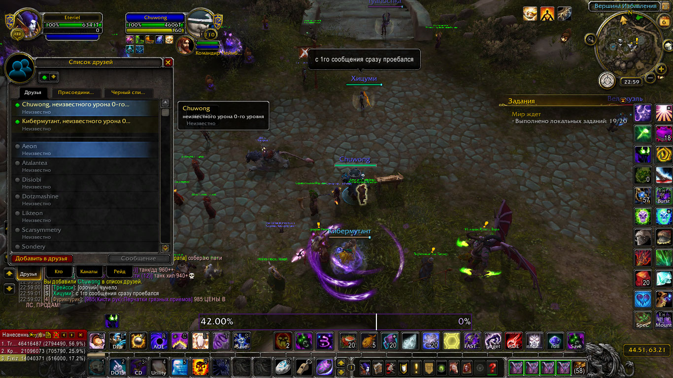 Блэк, можно попробовать добавлять друзей не в мирной локации(Даларан/Шторм), а, например, находясь в инсте и сменить локацию. Но проблема есть, могу попробовать снять видео с игрового. |