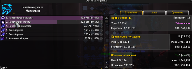 | Description | Талант [Усиление] увеличивает урон от Чародейские стрелы (на 12% за каждый Чародейский заряд) не работает Тестил урон с разными талантами и заметил, что урон от этого таланта не повышается А этот талант очень важен в данном спеке | ||||