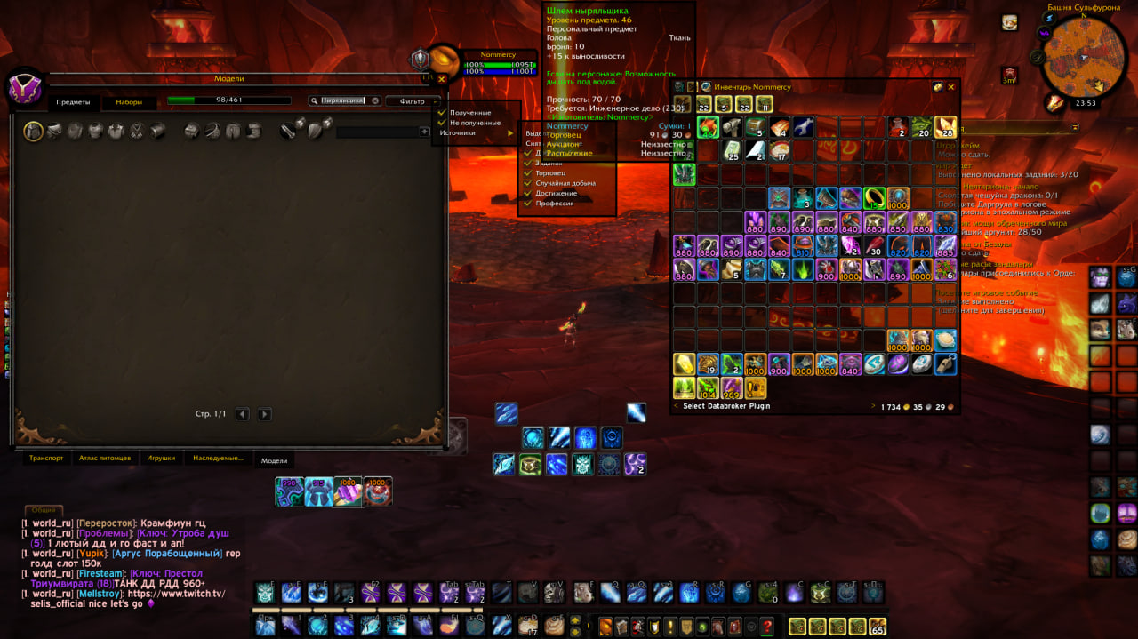 | Description | Добрый день, сделал в профессии инженерного дела шлем ныряльщика. https://www.wowhead.com/ru/item=10506 не добавляется в колекцию для трансмога . Мой персонаж - маг, реалм - х100 легион. Пробовал исправить в игре, исправить в ЛК, удалить кэш, затрансможить у моба для рисовок. помогите плиз, всю голду убил на мифриловые слитки =( | ||||