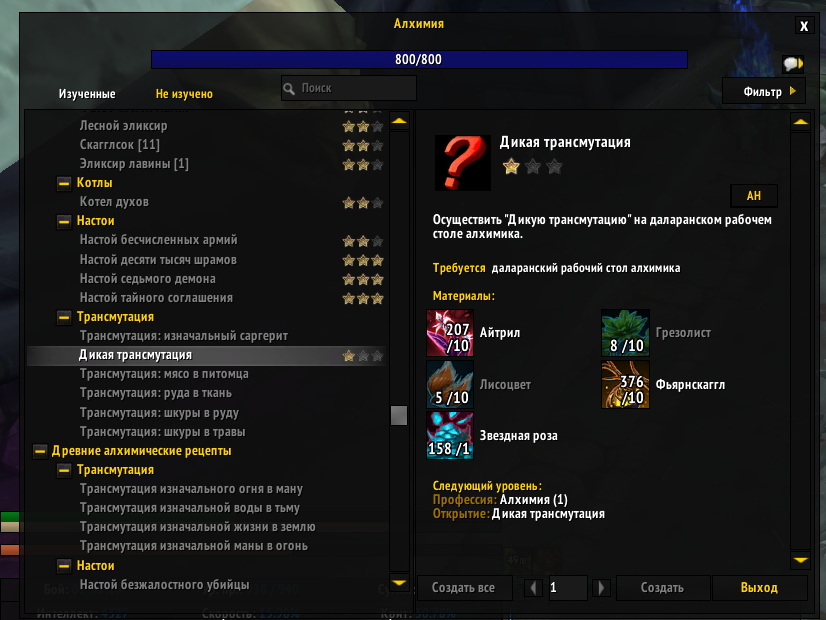 | Description | При крафте банок с двумя звездами не выпадала третья звезда, а вместо неё начали изучаться другие рецепты старого мира *скрин 1 и 2. Скрафтив больше 600 банок на силу - были изучены почти все рецепты со второго скриншота (исключение - два рецепта, которые прокнули при крафте Дикой трансмутации *скрин 3) После крафта 450 банки - рецепты прокать прекратили, так же нет прока третьей звезды | ||||