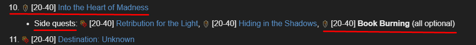 | Description | Легион плюс. Таладор. Орда. Магхар, охотник Повелитель зверей Не правильное условие принятие квеста. Квест опциональный, должен выполнятся во время прохождение квеста "В сердце безумия" Пруф:https://wowpedia.fandom.com/wiki/Book_Burning | ||||