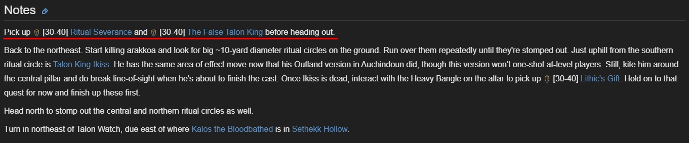 | Description | Легион плюс. Пики Арака. Орда. Магхар, охотник Повелитель зверей Квест [https://www.wowhead.com/ru/quest=35004/служители-мертвого-бога] должен быть доступен вместе с квестами [https://www.wowhead.com/ru/quest=35003/ритуальное-отсечение] и [https://www.wowhead.com/ru/quest=35011/король-самозванец] Пруф: https://wowpedia.fandom.com/wiki/Servants_of_a_Dead_God | ||||