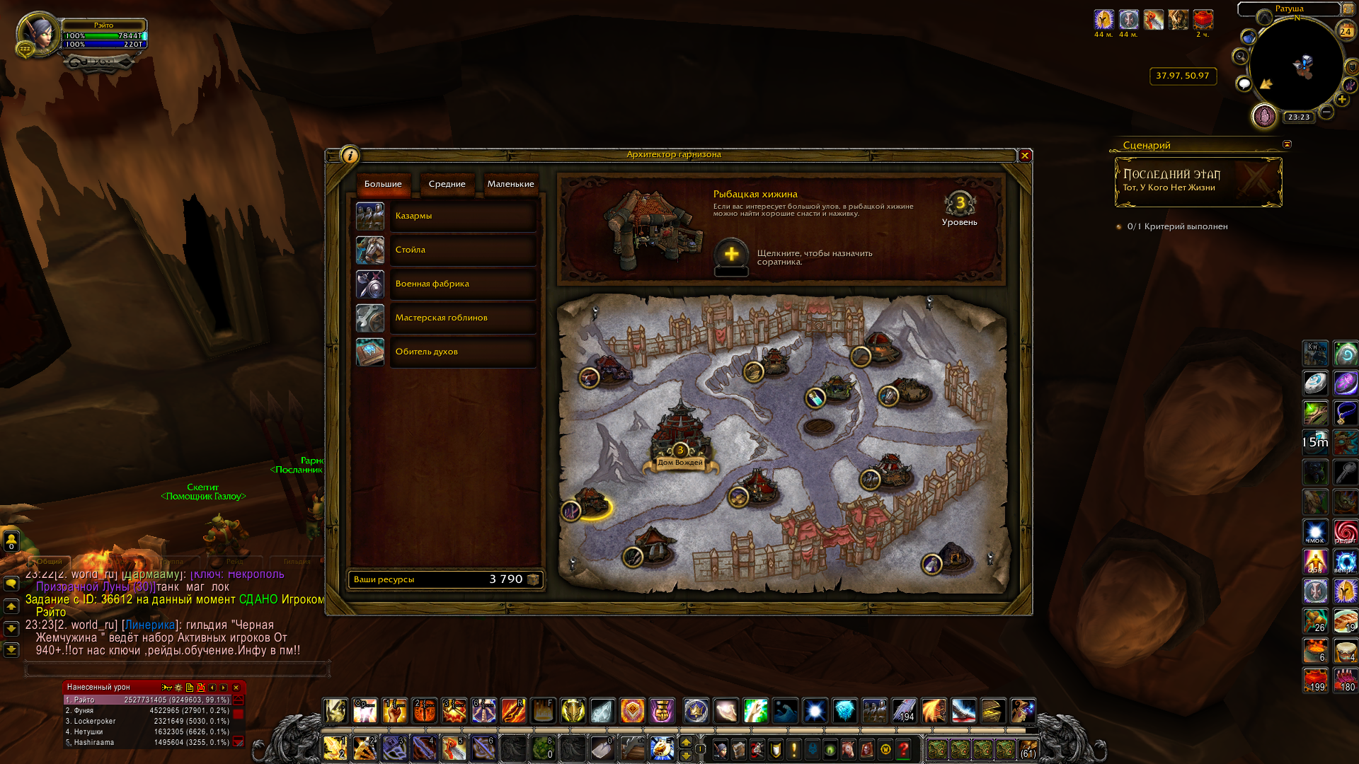У меня рыбацкая хижина 3лвл.Без этого Нат Пэгл в гарнизон не приходит.А рыба -гигант и НЕ ДОЛЖНА ЛОВИТСЯ В ВОДОЕМЕ ГАРНИЗОНА.Кв "НАстоящий дренорский рыбак" у меня есть,но пойманая рыба по кв не засчитывается. кв 36612 36608 36609 выполнены |