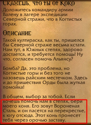 | Description | Легион плюс. Калимдор - Когтистые горы. Альянс. Култирасец, шаман Совершенствование После нажатия на нпс появляется спутник, я так понимаю этот [https://www.wowhead.com/ru/npc=41187/вороненая-сталь] . На деле после нажатия на [https://www.wowhead.com/ru/npc=41186/вороненая-сталь] игрок должен сесть на него и поехать в Лагерь экспедиции Северной стражи. НО это всё должно работать когда у игрока есть квест [https://www.wowhead.com/ru/quest=25765/скажешь-что-ты-от-коко] | ||||
