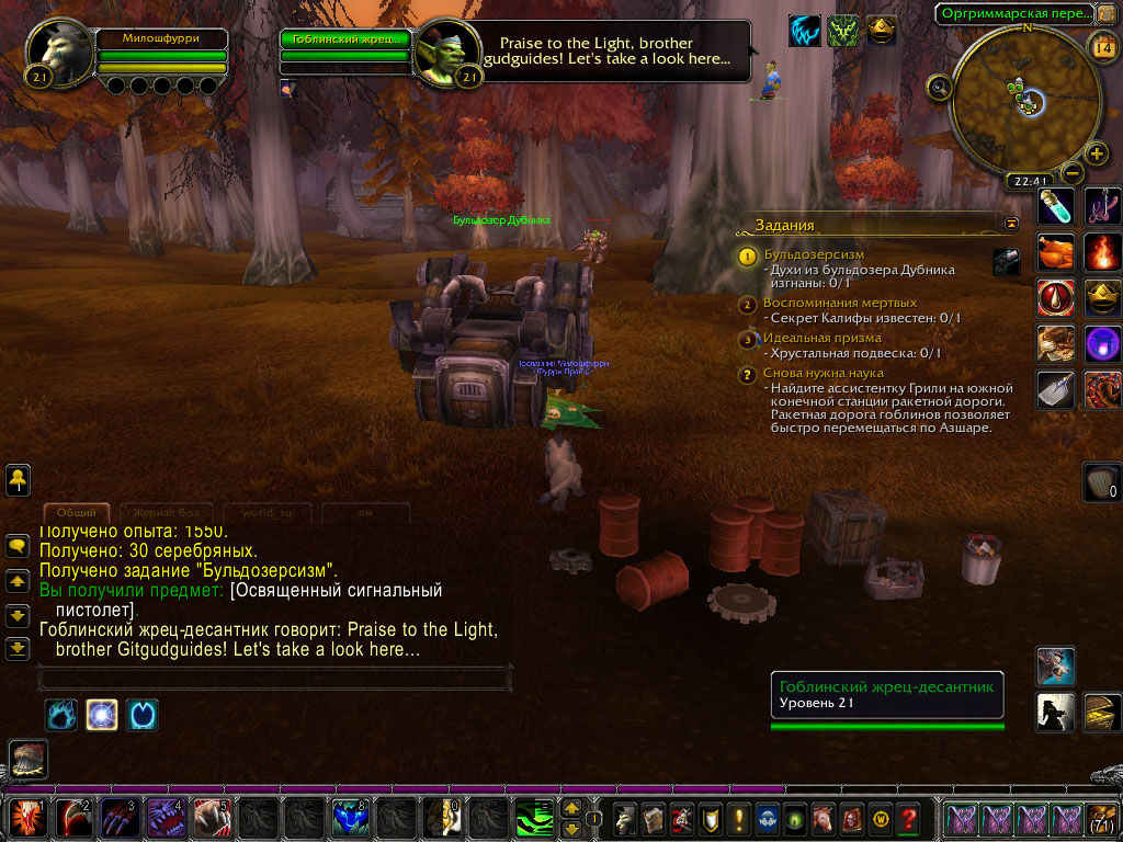 | Additional Information | Если нужна будет ссылка на задание вот: https://www.wowhead.com/ru/quest=14423/бульдозерсизм | ||||