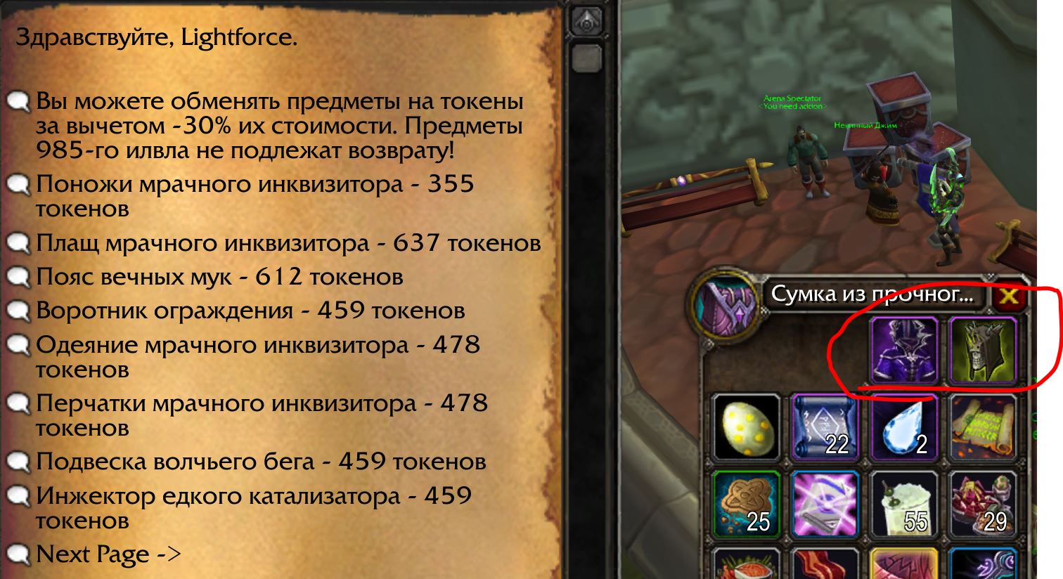 | Description | Добрый день! ГМ посоветовал обратиться сюда с моей проблемой. У вендора «Возврат донат-вещей» в списке отсутствуют ранее купленные предметы: - [Поддоспешник порчи Саргераса] - [Маска смерти мрачного инквизитора] В списке для возврата отображаются только недавно приобретённые вещи. Не уверен, баг это или так задумано. Если это ошибка — прошу помочь разобраться. Спасибо! Ник: Lightforce Прикладываю скриншот (если нажать Next Page >, там просто пусто). | ||||