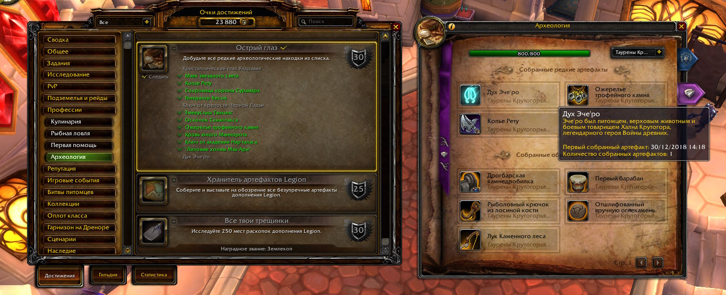 этим, дух Эче'ро и ключ в археологии например на скрине (там только от этого персонажа показывает выкопанное), да и профа раскачанна только на этомтак же проверил начальные квесты этих трех цепочек результат то же, подозреваю что за 7 лет что-то где-то вычистили/дропнули в бд, но вам конечно виднее |