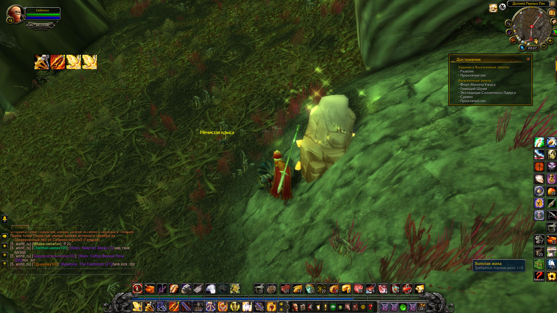 | Description | Почти все Золотые жилы в Оскверненном лесу не добываются, кроме тех что в пещерах. Когда кликаешь на них время добычи идет, но потом ничего не забирается, и жила не исчезает и на мини-карте по прежнему показывает, что жила не добыта. | ||||