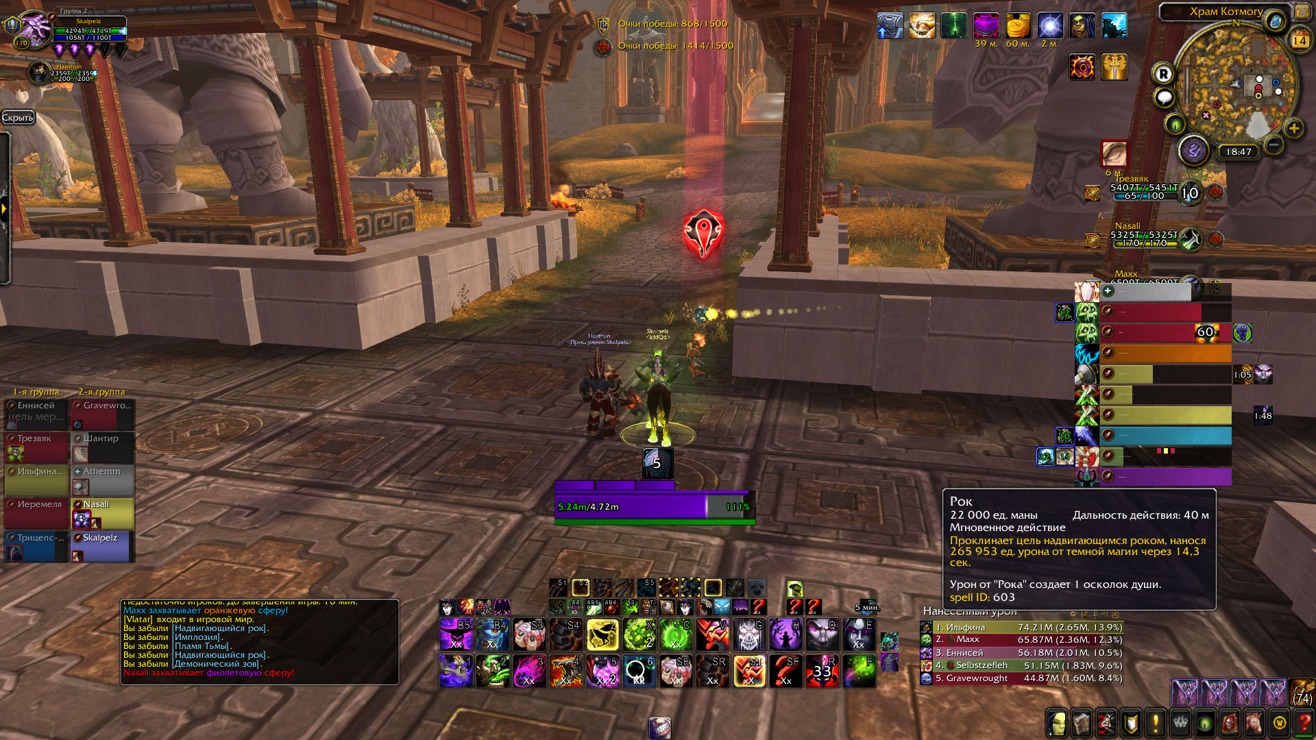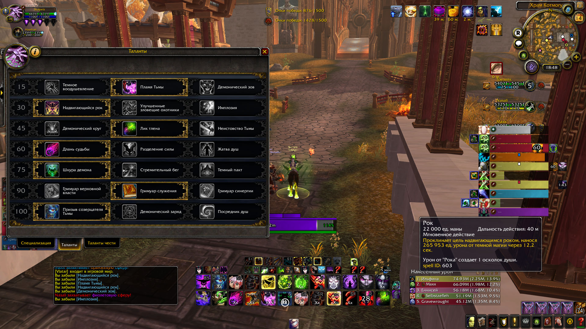 Доброго времени суток , ситуация связанна с тем что талант [Надвигающийся рок] 196270 влияет именно на базовое кд заклинания Рок. Если говорить подробнее то базовая длительность у способности рок 603 20 сек , ну или 20000 мс , у вас длительность без учета таланта 15.6 , значит могу примерно предположить что вы имеете примерно 28.2 % хасты. Значит имеем 2 случая как будет расчитываться длительностьность дотки 1 без таланта значит у вас будет примерно считатся 20/(1+0.28) =15.6 сек 2 случай с талантом рок будем иметь 17/(1+0.28) = 13,28 что совпадает с вашего значения Обычно такие таланты на длительность дот эффектов или на укрез кд способностей обычно берутся из базового значения что бы не возникало ситуаций при которых вы например разогнали с помощью хасты ну например на боссе Корстилакс длительность доты от Рока меньше чем 3 сек , тогда в таком случае как бы мог работать талант на урез еще 3 секунд бонусом ? это бы создавало некоторые несоответствия Как сами видите все значения совпадают, поэтому на данный момент репорт считаю не актуальным. Конечно, если вы сможете предоставить пруфы которые бы указывали на ошибочность данной механики то вы в любой момент можете переоткрыть эту задачу. |