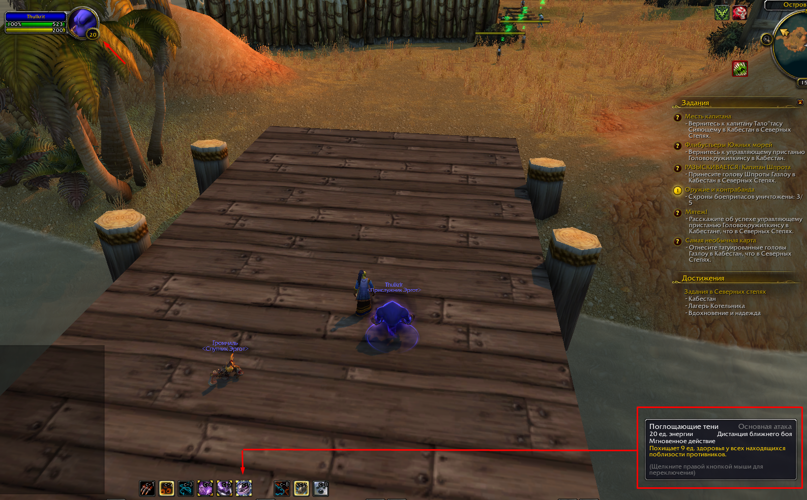 | Description | нпс - призываемый чернокнижником "демон Бездны" навык - "Поглощающие тени" навык сам по себе срабатывает, и тратится мана у пета, но хп он ему совсем не регенит | ||||