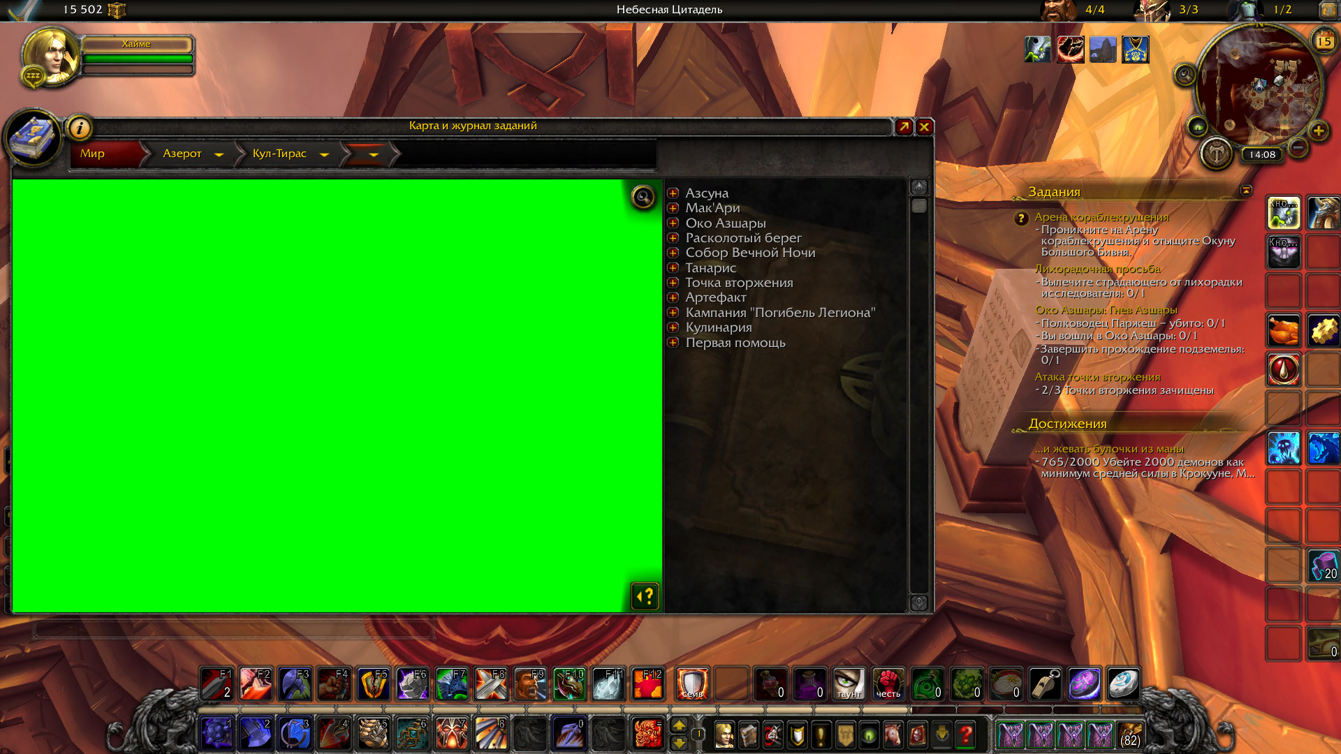 | Description | При открытии карты Азсуны -- зелёный экран и надпись Кул-Тирас | ||||
