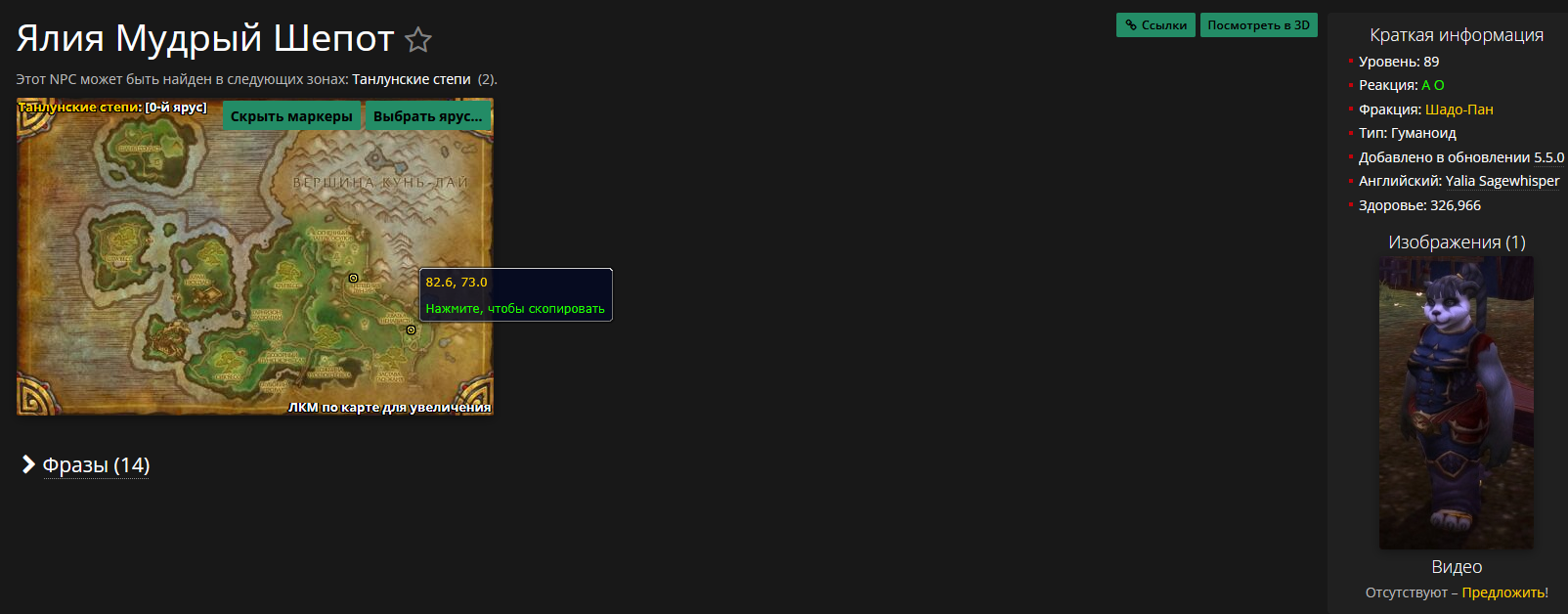 | Description | Нет NPC квест-гивера: Орбисс (https://www.wowhead.com/ru/npc=60857) по квесту "Копье в боку, сердце на цепи" (https://www.wowhead.com/ru/quest=30786) | ||||