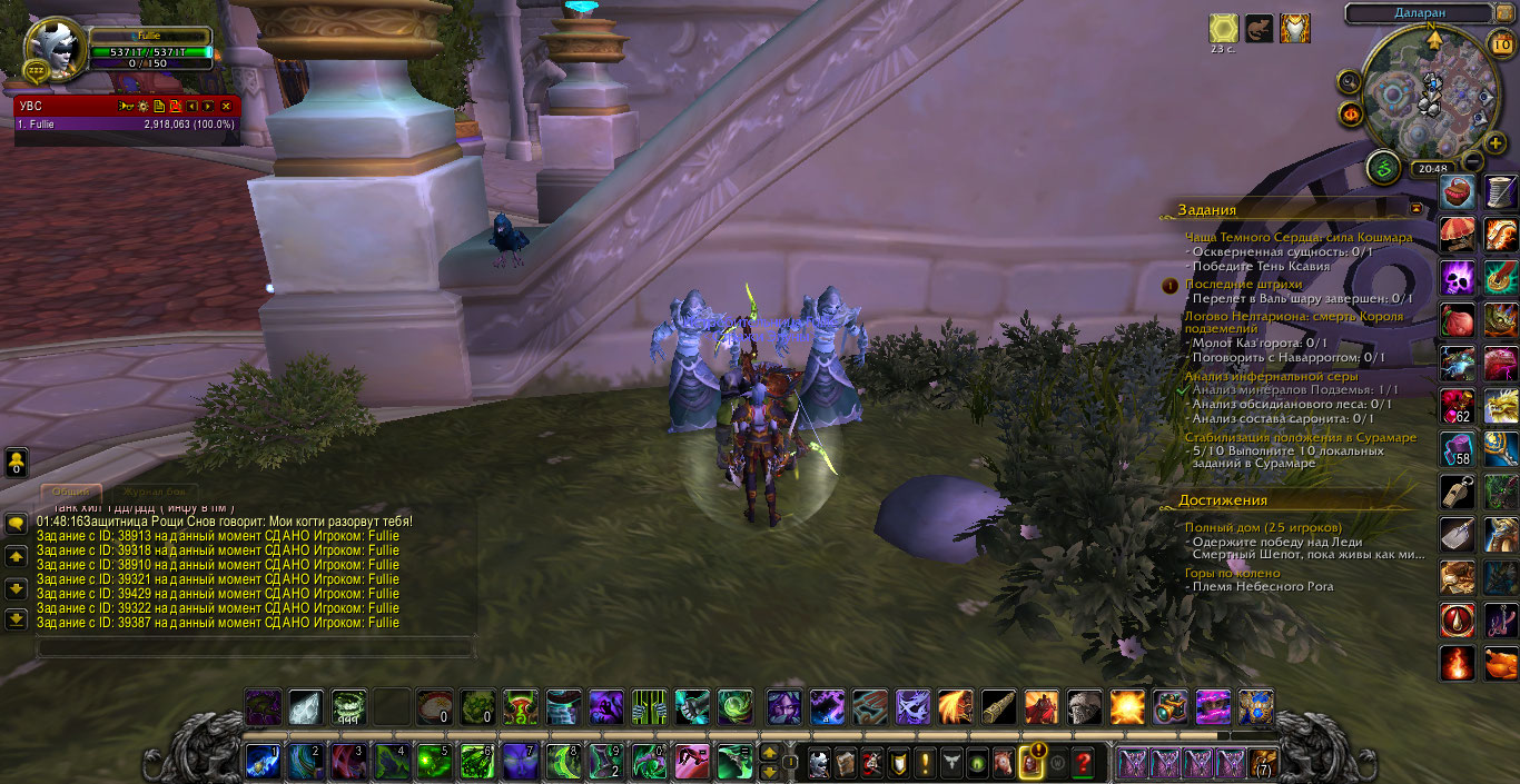 Здравствуйте. Проверьте, выполнен ли у вас квест https://ru.wowhead.com/quest=39487/кристальная-ярость командой ".q s 39487" и предоставьте скриншот. И также попробуйте засчитать этот квест у Де'Багера в разделе "достижения или критерии" и "задание"! |