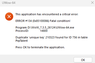 | Description | Переход к списку персонажей ок -> начинается загрузка и вылетает крит. | ||||