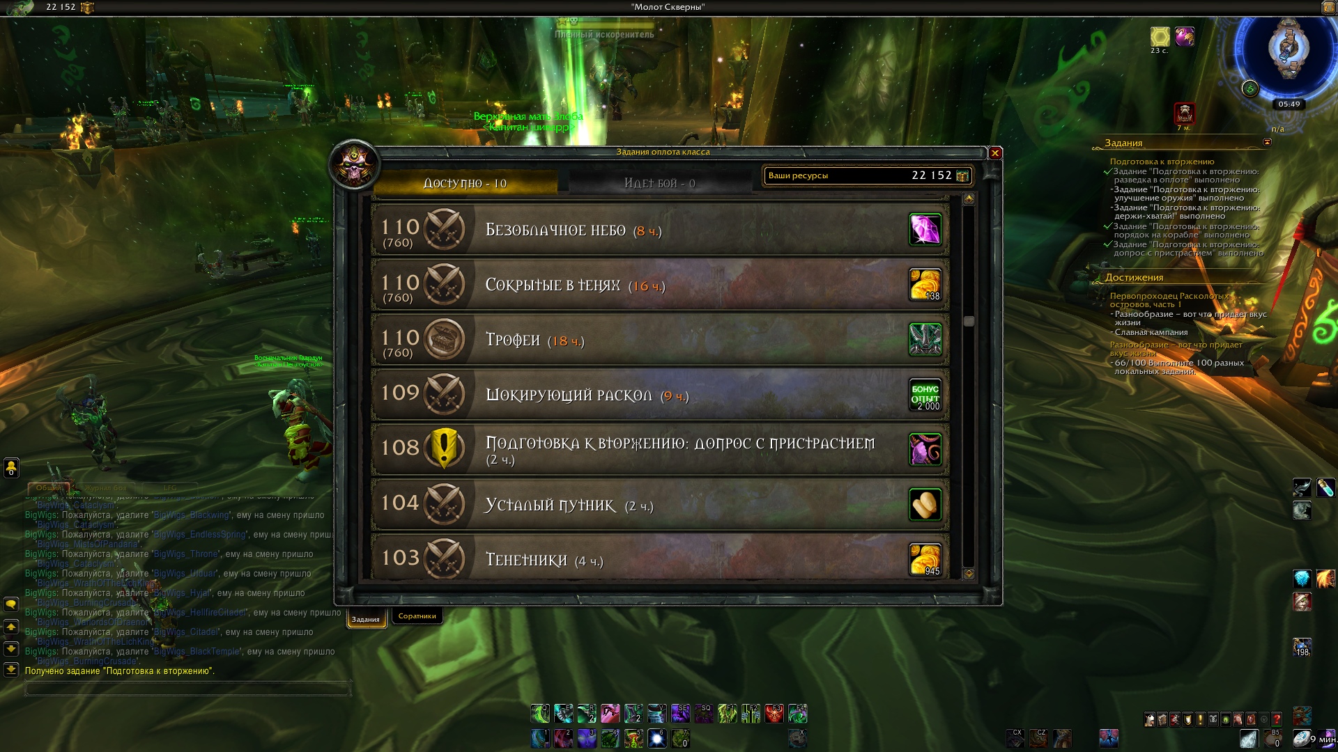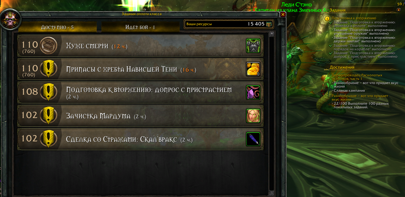 У меня просто нету этих двух, которые нужны. У меня всегда висит "Подготовка к вторжению: допрос с пристрастием" и даже если его делать и не делать, то оно просто по кд висит. Если я отменяю кв и беру заново, мне автоматом засчитывает эти 3 пункта и опять-же проявляется точно такая-же проблема. |