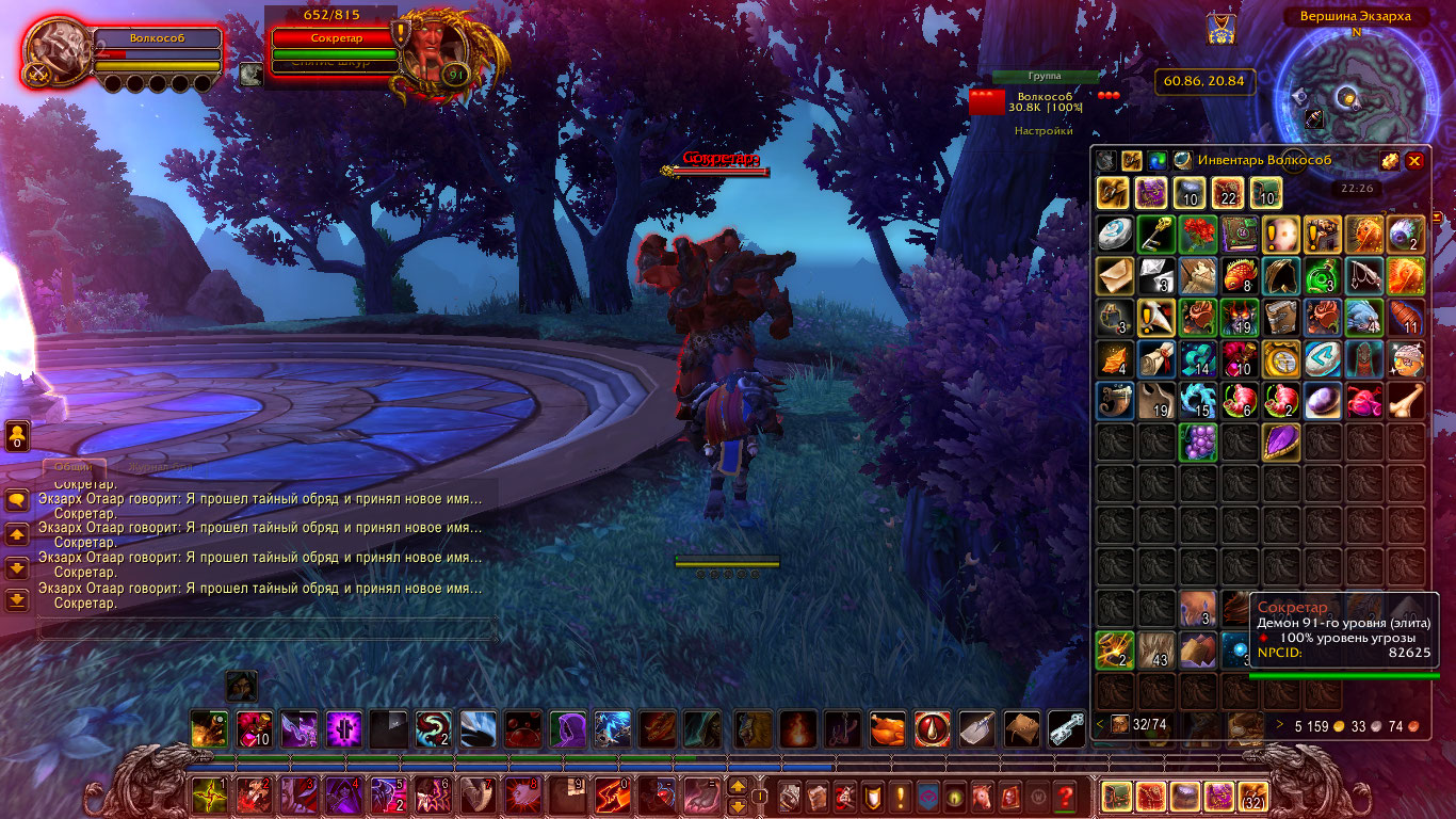 Descriptionhttps://ru.wowhead.com/quest=34792/истинное-имя-предателя - проблема с NPC. После того как https://ru.wowhead.com/npc=80076/экзарх-отаар превращается в https://ru.wowhead.com/npc=20132/сокретар, он начинает клонироваться. В общей сложности его стало 20+. Очень похоже, что клонируется он в момент, когда говорит. Пройти квест почти нереально ввиду огромного урона со стороны кучи NPC.