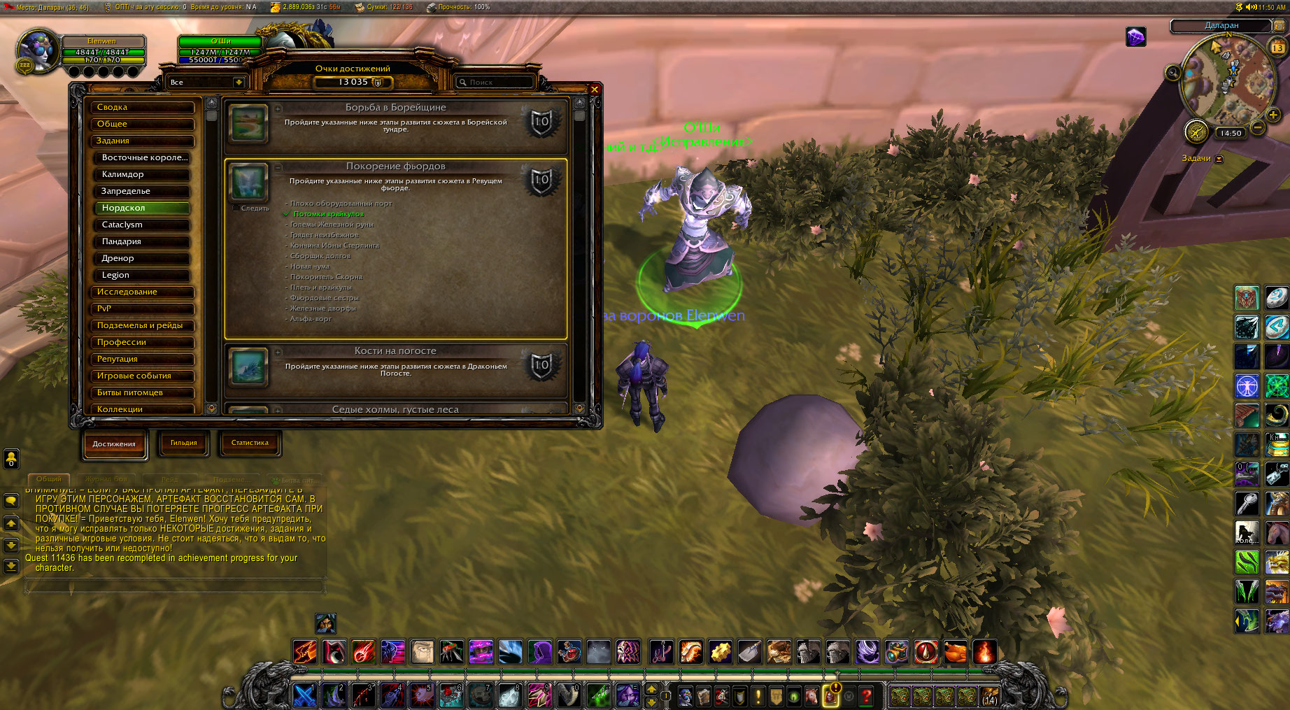 | Description | Выполнение задание https://ru.wowhead.com/quest=11436/полетаем не даёт прогресса для достижения https://ru.wowhead.com/achievement=34/покорение-фьордов. Исправление через О'Ши не дало результата, несмотря на сообщение о восстановлении критерия. | ||||