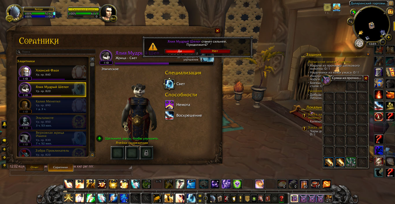 | Steps To Reproduce | Например, соратник Ялия Мудрый Шепот изначально имела 820 ур.п. При использовании на нее https://ru.wowhead.com/item=136412 уровень предметов стал 810. | ||||